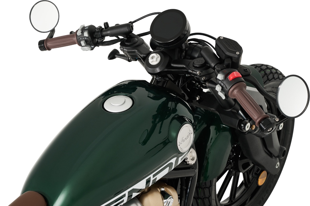 Iz perspektive vozača, instrument tabla nudi čist i lako čitljiv prikaz koji kombinuje analogne i digitalne elemente, omogućavajući jasan uvid u sve ključne informacije tokom vožnje. Ergonomski položaj upravljača i optimalna visina sjedišta stvaraju idealnu poziciju za duže ture ili kratke gradske vožnje. Svaki detalj – od okruglih retrovizora do kompaktnog, elegantno oblikovanog rezervoara – osmišljen je da unaprijedi autentično bobber iskustvo, uz modernu praktičnost i jednostavnu upotrebu.